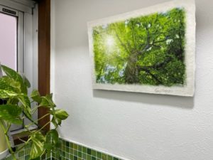 今回は壁にグリーンの「画」を掛けました。