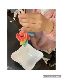 糸を引っ張って、どの飴が引けるかなぁ~🍬🍬🍬
